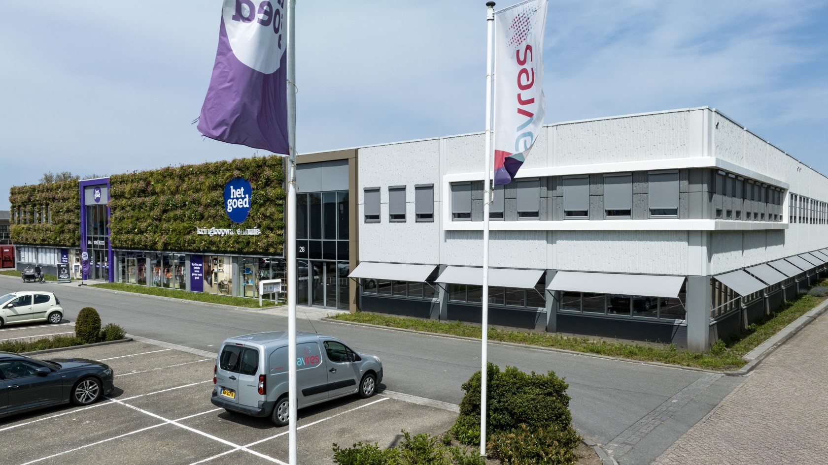 Daarna om/opgebouwd tot kantoren, sociale werkplaats, kringloopwinkel en is er groene gevel aangebracht.